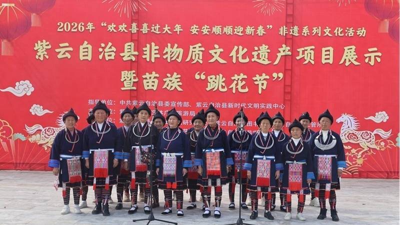 此次活动将苗族跳花节传统民俗与非遗展演深度融合,既生动传承了苗族经典民俗礼仪,又集中展示了紫云非遗保护传承的丰硕成果,丰富了群众新春精神文化生活,增强了各族群众的文化认同感与民族凝聚力。今后,紫云将持续以各类文化活动为载体,深耕非遗传承工作,为县域文化发展注入持久活力。(图/文 杨冬华 )
