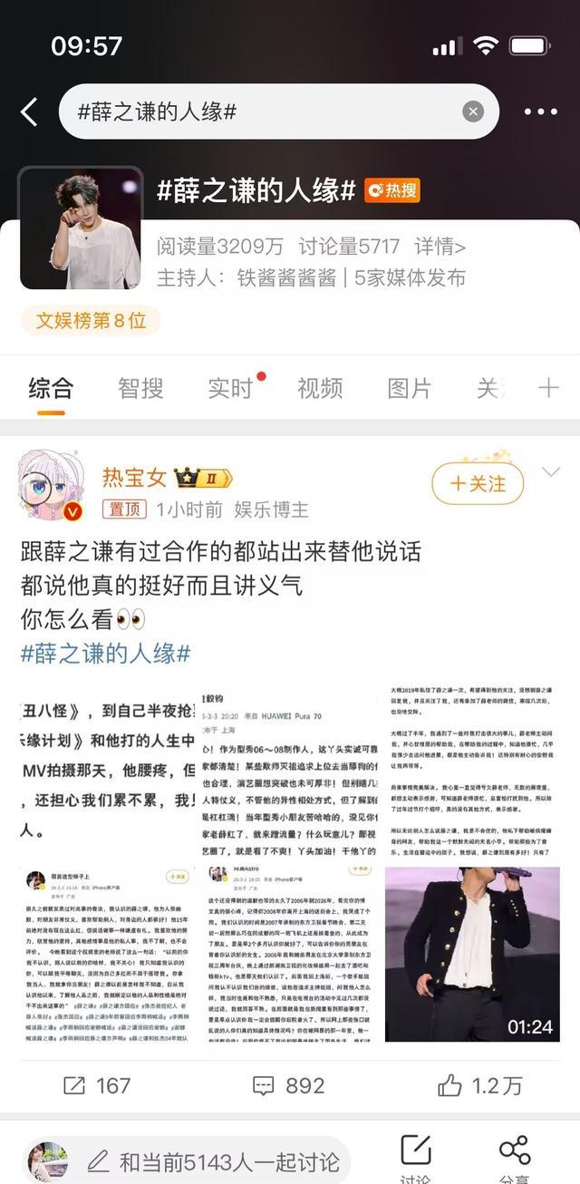 二、舆论的天平也慢慢向薛之谦方倾斜:“薛之谦的人缘”上热搜。
